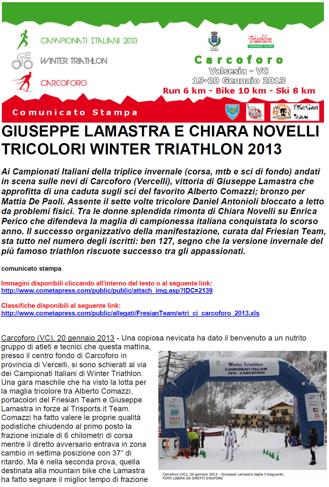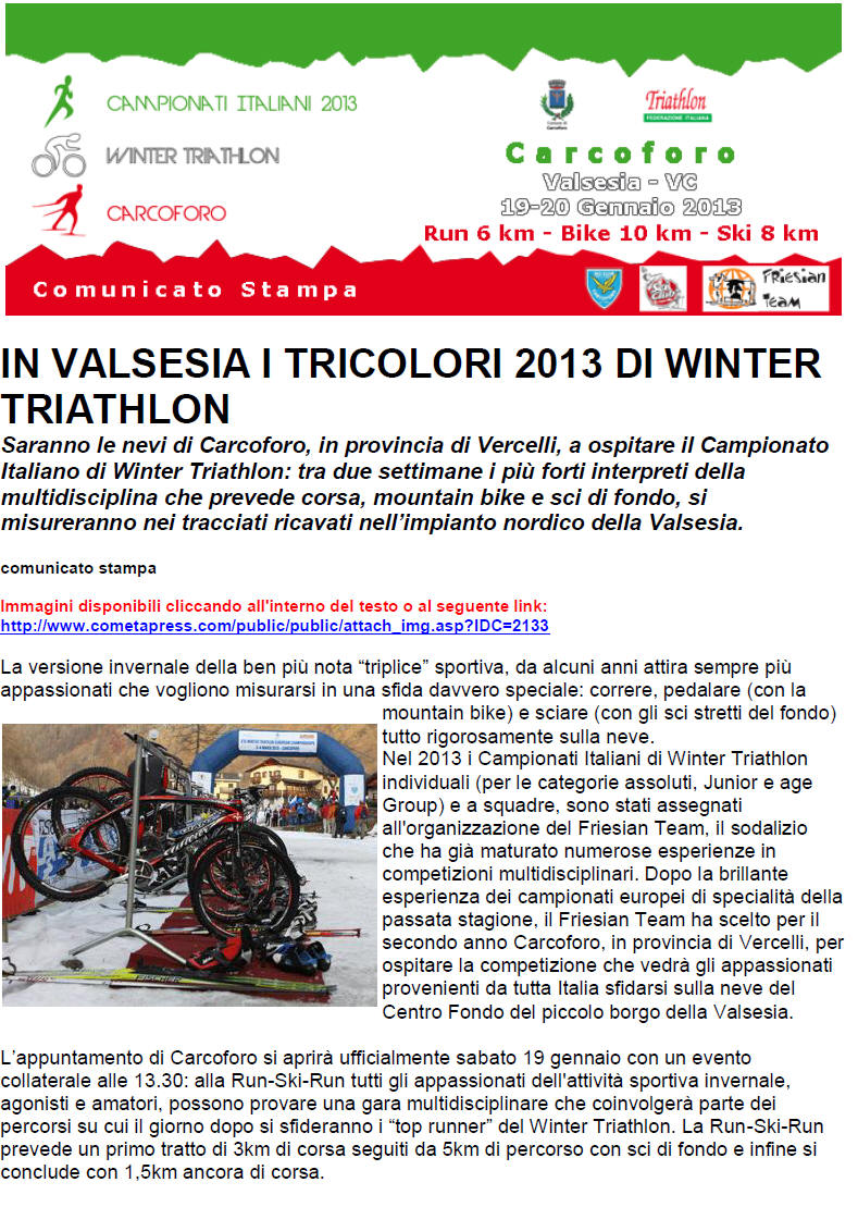 L’associazione inoltre gestisce la pista di fondo, sita nel Comune di Carcoforo, omologata F.I.S.I. per competizioni a livello nazionale con una lunghezza di 5000 mt e altri percorsi intermedi adatti sia ai principianti che agli agonisti. Buona diffusione hanno avuto negli ultimi tempi discipline quali le competizioni di ciaspole e di triatlhon invernale oltre che la pratica delle ciaspole a livello escursionistico nonché la pratica del pattinaggio su ghiaccio naturale. Ricordiamo che vi è la possibilità di noleggiare le attrezzature complete per la pratica dello sci di fondo, ciaspole e pattinaggio su ghiaccio.