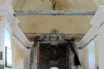 Il Santo è raffigurato nell'unico riquadro affrescato presente sopra la porta, opera di un Avondo nel 1853.
