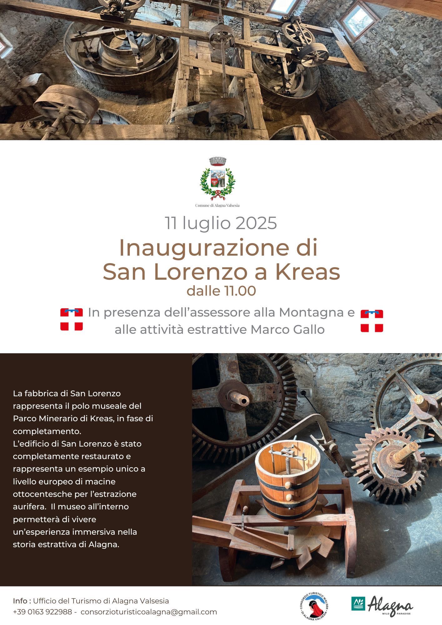 Inaugurazione di San Lorenzo al Kreas dalle ore 11.00, in presenza dell'Assessore Regionale alla Montagna e alle attività estrattive Marco Gallo.