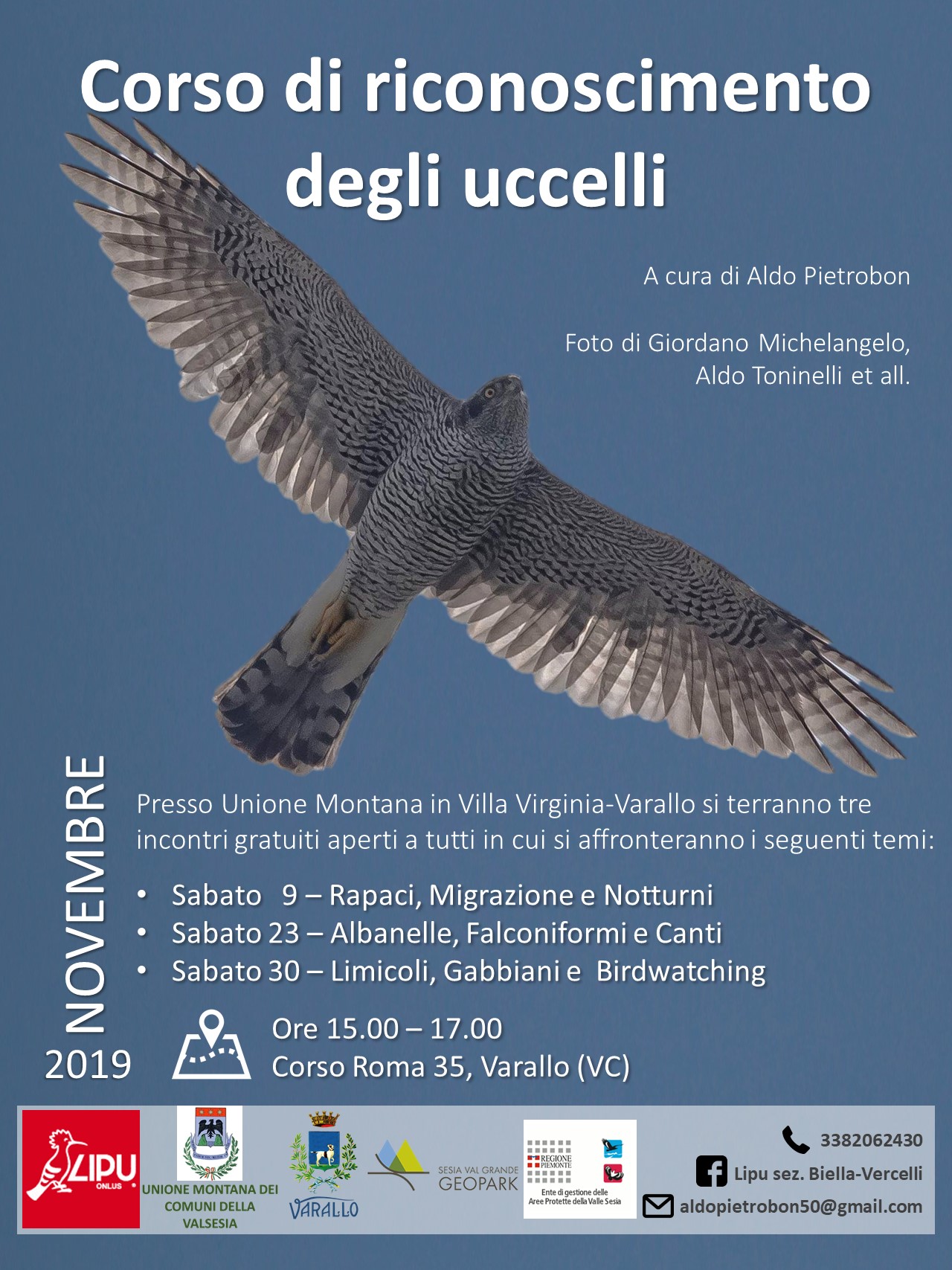 La LIPU Sezione di Biella organizza nelle giornate di sabato 9-23 e 30 novembre dalle 15,00 alle 17,00 presso la sede dell'Unione Montana un Corso di riconoscimento degli uccelli.