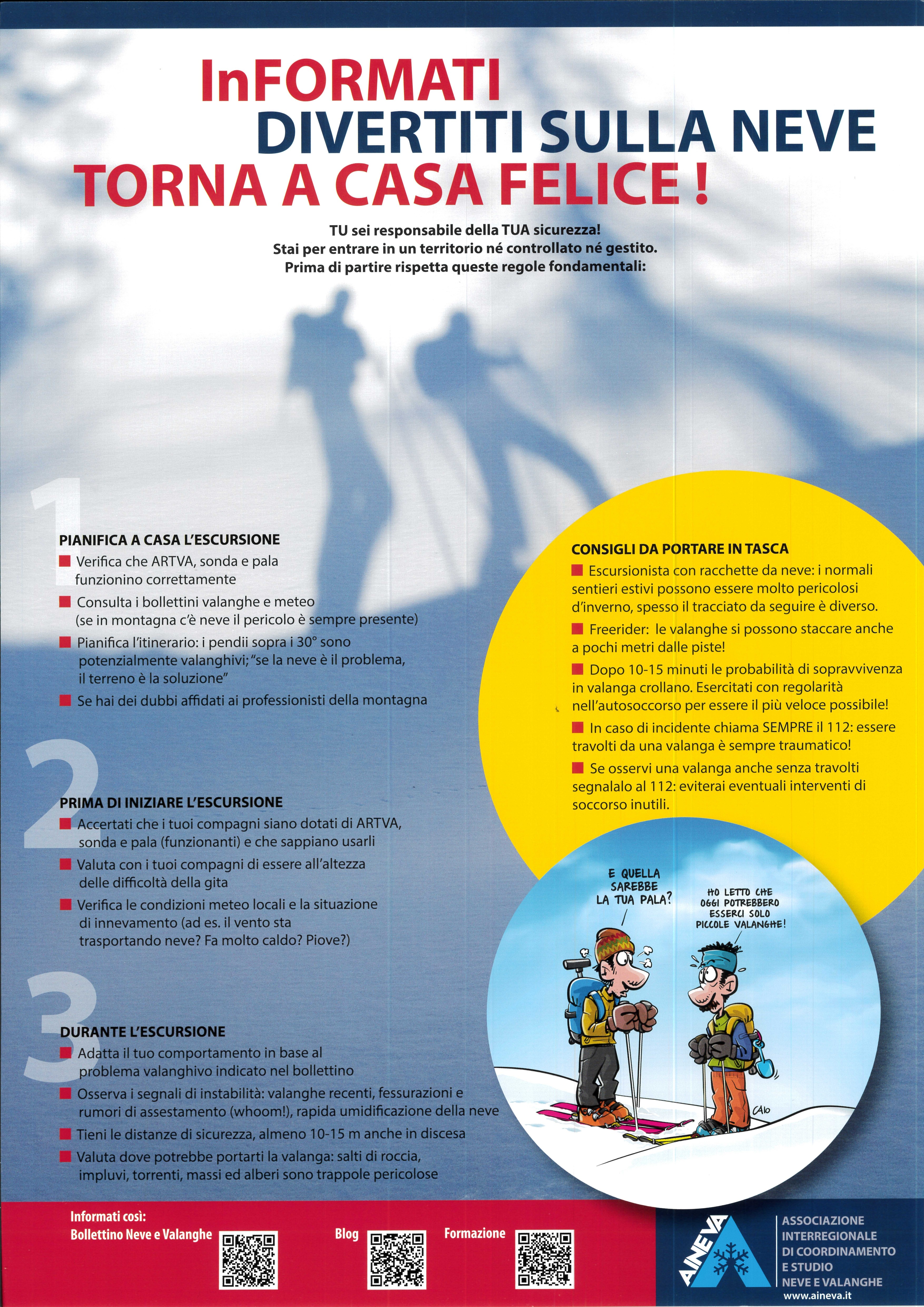 - Consulta i bollettini valanghe e meteo (se in montagna la neve il pericolo è sempre presente);