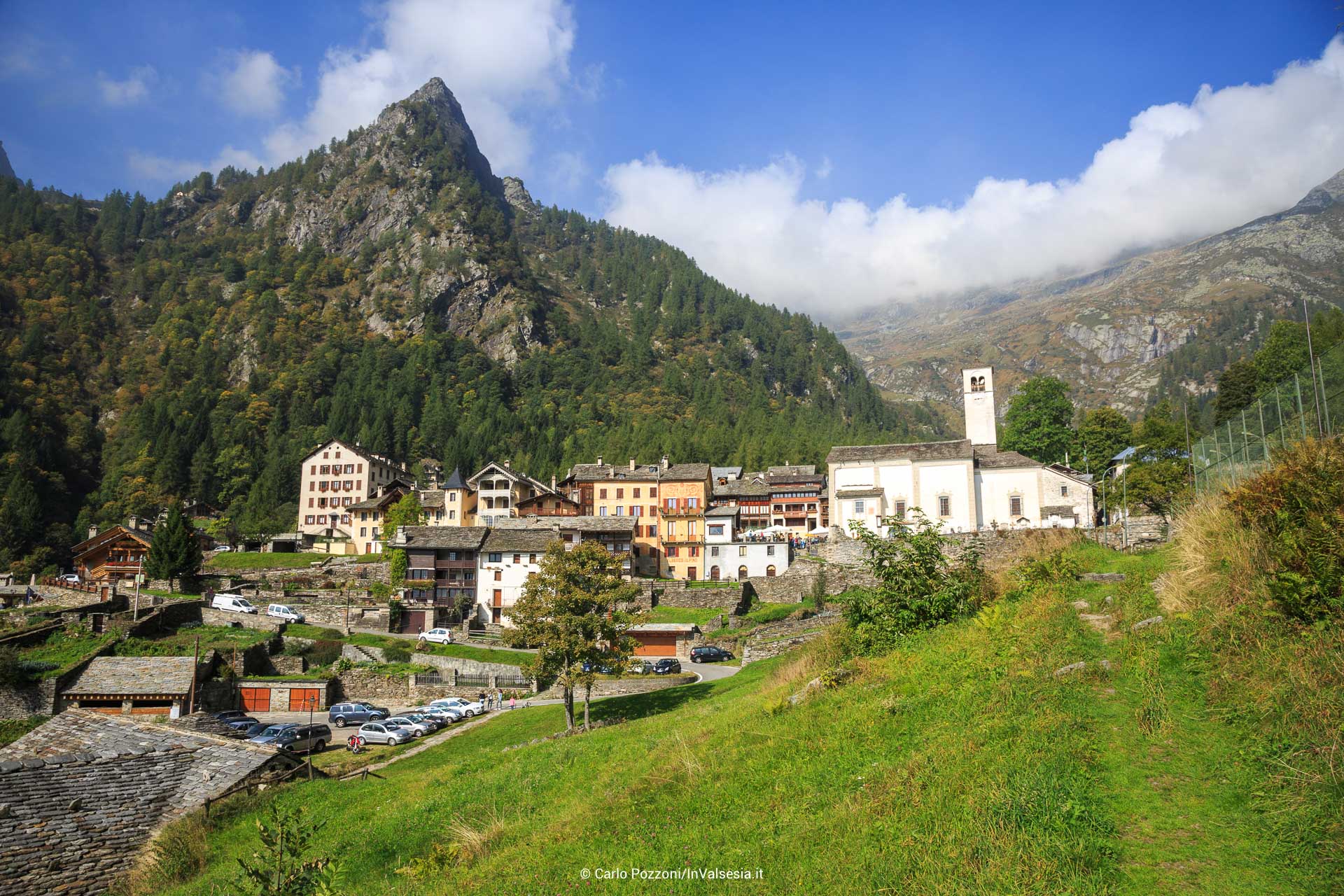 Al termine della strada, imboccando una stretta viuzza, ci si trova nel nucleo storico dove quattro case in architettura Walser, grazie ad un attento restauro, testimoniano l'origine del villaggio.